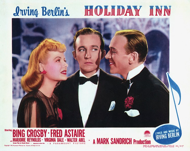 Berlin and Sandrich pitched the project to Paramount with one stipulation: the studio had to sign Bing Crosby to play the main character, Jim Hardy. Not only did Paramount executives do so, they also signed Fred Astaire to play Jim’s former partner. The pair would compete for the love of Marjorie Reynolds’s character, a singer and dancer who performed in Jim’s holiday-themed shows.